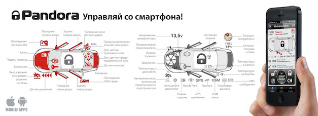 Установив Pandora DXL 3940, вы сможете управлять своим автомобилем всеми существующими способами: с ЖК-брелока Pandora, штатного брелока автомобиля (Slave-режим), интернет-сервиса p-on.ru, мобильного приложения под iPhone/Android и транспондерной метки, используя либо кнопку на ее корпусе, либо режим Hands Free. Если вы обладаете телефоном, работающим на другой платформе, нежели указанные, вы можете управлять сигнализацией, осуществляя исходящие вызовы и получая ответы в SMS-сообщениях.